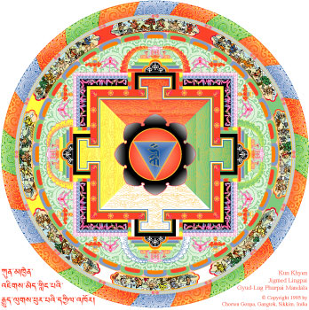 This is the mandala of Phurba based on the kama tantric tradition as composed by Kunkhyen Jigmed Lingpa. It is available in both 11-inch and 5.5-inch sizes.